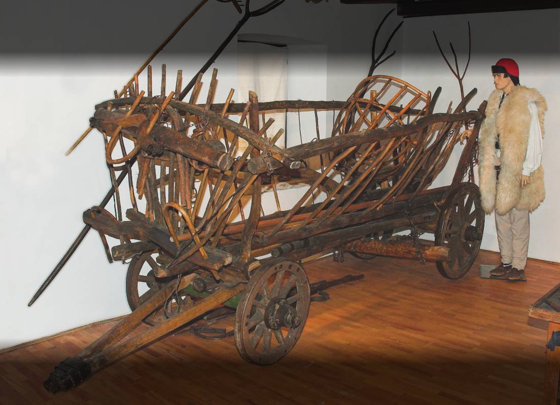 Kompletna tara izrađena rukom iz bukova drva - sva crna od dima. Dijelovi: 2 stative, 2 vratila, 2 sapona, 2 zapinjače, 1 podložnjak, 2 cipca, 1 rastezaljka, 2 šipke, 1 čunak, 1 cijev, 1 letnjak, 2 niti, 1 brdo, 1 brdaljka.