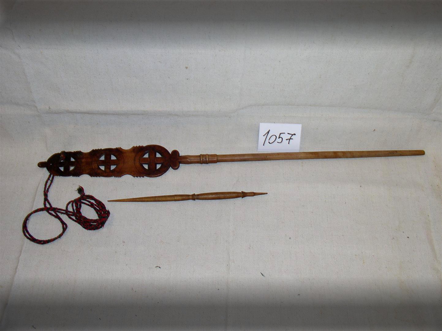 Drvena preslica izrađena iz bukovine. Plošna odulja daska sa dugim okruglim držalom. Glavni ukras predstavljaju tri kružnice unutar koji su tri križa (prorezano). Malo bogatije izrađeno držalo ispod daske (deveterokut). Ima vreteno sa vrpcom za pričvrščivanje vune ili konoplje - pređe. Vreteno je dekorativno izrađeno, širi se i suzuje. Daska je ukrašena s obje strane.