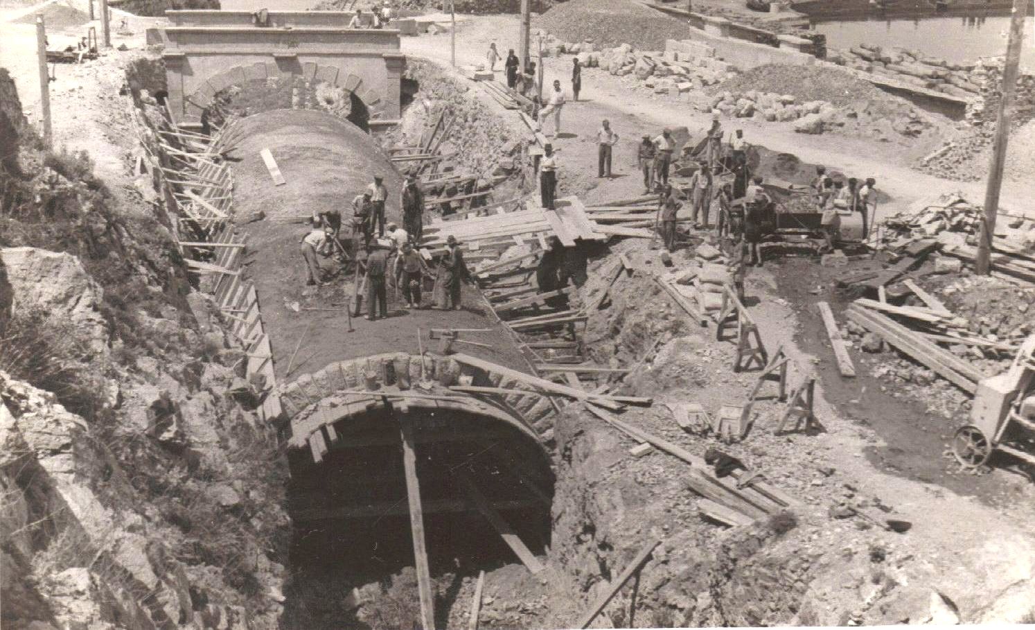 Prednja strana razglednice prikazuje radove na prostoru blizu današnjega Parka senjskih književnika i Garni hotela Art. Radi se o izvođenju zemljanih i betonskih radova. Razglednica je crno-bijela i uokvirena je bijelim rubom koji na krajevima završava u obliku valova.