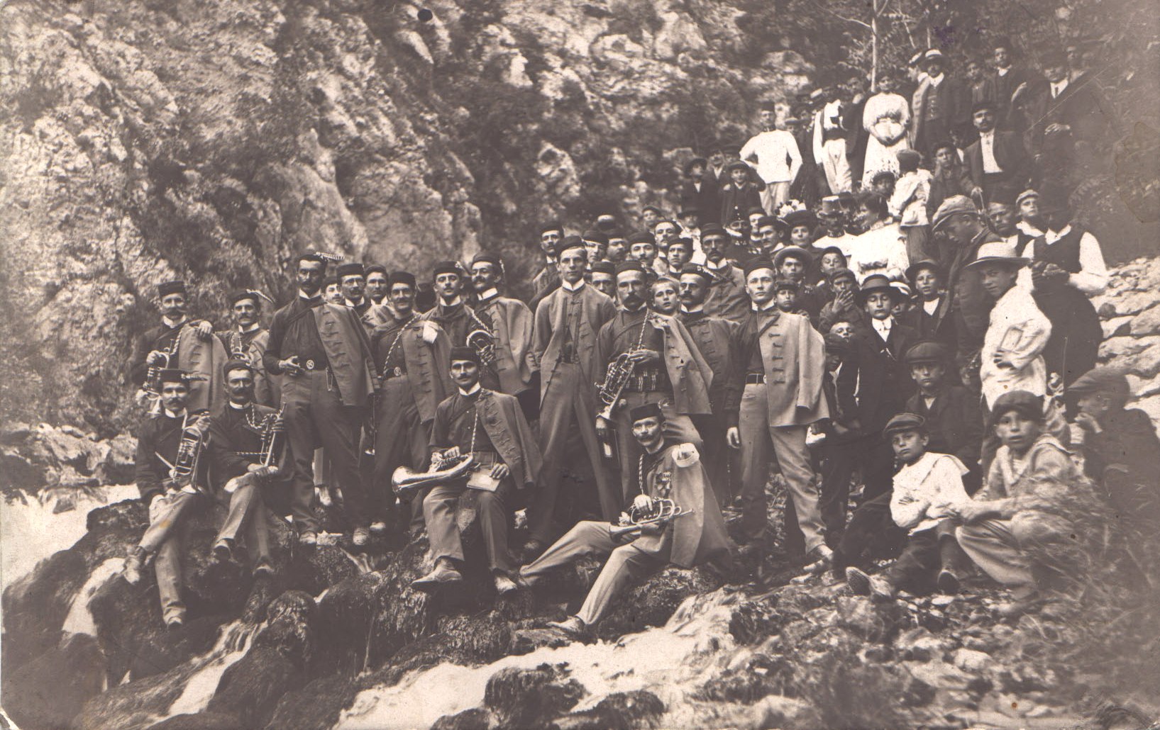 Fotografija prikazuje senjske sokolaše na izletu u okolicu Senja.