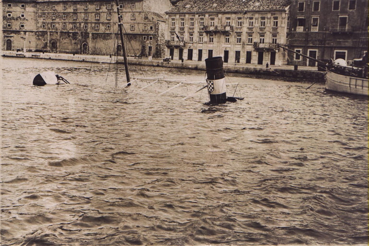 Na prednjoj strani razglednice prikazan je dio senjske luke s potopljenim parobrodom Svačić. U moru se vidi vrh jarbola i dimnjak na kojem je hrvatski grb. Razglednica je, zajedno s ostalim razglednicama, fotografijama i predmetima otkupljena od Jurice Krajača iz Senja i na taj je način pristigla u Gradski muzej Senj. 25. prosinca 1969.